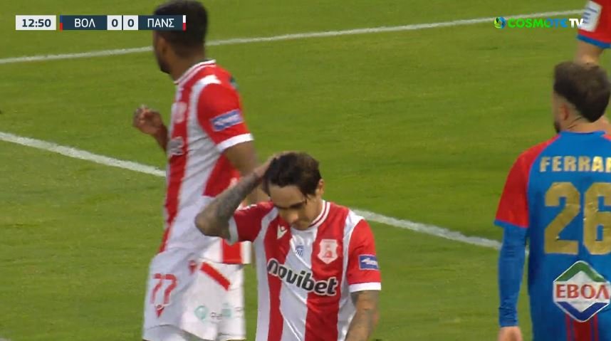 Στο 13’ ήταν η σειρά του Σιαμπάνη να βγάλει δύσκολο το σουτ του Γκαλβάν μέσα από την περιοχή.