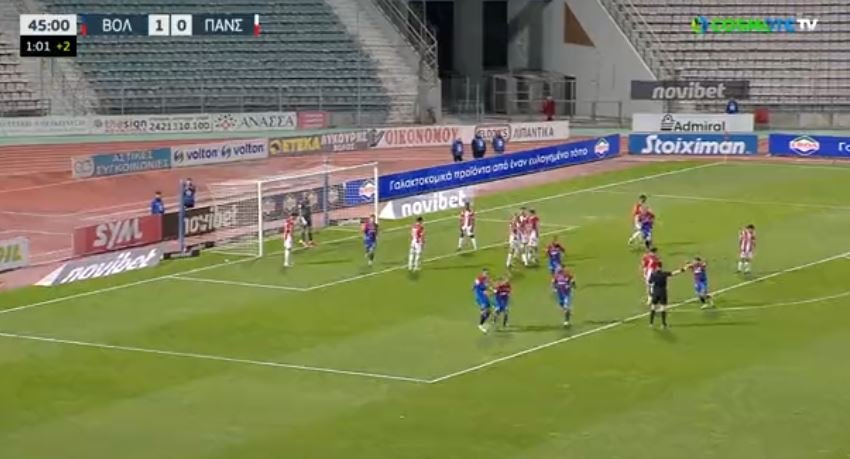 Στο 45+2’ μετά από κόρνερ, ο Καλογερόπουλος με κεφαλιά έγραψε το 2-0.
