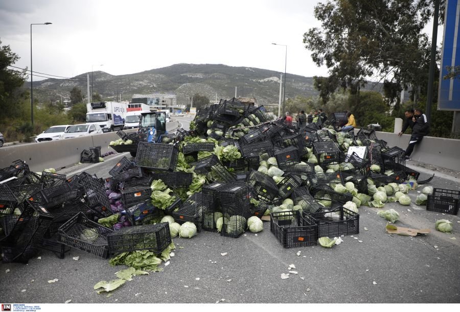 Στο σημείο βρίσκονται συνεργεία τα οποία έβαλαν στην άκρη τα λάχανα ώστε λίγο πριν τις 9:30 να να δοθεί στην κυκλοφορία αρχικά η αριστερή λωρίδα.