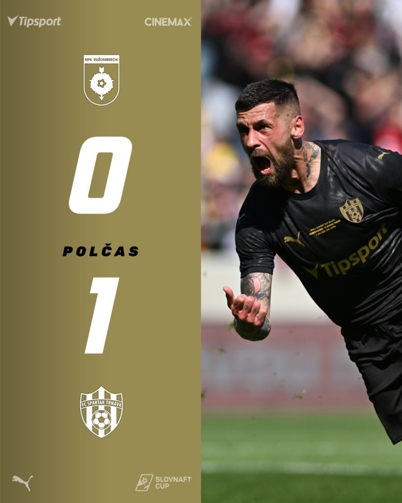 Σήκωσε κούπα η Σπαρτάκ Τρνάβα. Η ομάδα του Μίκαελ Γκασπάρικ, χάρη σε τέρμα του Ντάνιελ στο 31ο λεπτό της αναμέτρησης λύγισε με 1-0 τη Ρουζόμπεροκ και κατέκτησε το Κύπελλο Σλοβακίας για όγδοη φορά στην ιστορίας και για πρώτη μετά από τη σεζόν 2022-2023, όταν και είχε νικήσει την Σλόβαν Μπρατισλάβας με 3-1 στην παράταση.
