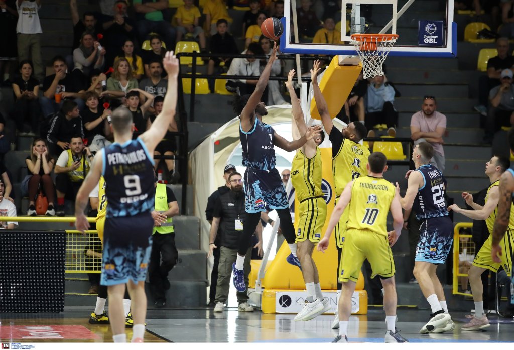 Ο Κολοσσός Ρόδου ανέβασε... κατακόρυφα την απόδοσή του στην τρίτη περίοδο. Μπριγκς και Φρίντρικσον έκαναν το 49-34, αλλά με τους Γκούντγουιν, ΜακΓκλίν και Περάντες η διαφορά έπεσε στους 10 (51-41). Οι φιλοξενούμενοι συνέχισαν να βρίσκουν λύσεις (53-46) και με τους Σλαφτσάκη και Κουρουπάκη μείωσαν σε 53-50. Ο Τανούλης έδωσε σκορ στο Μαρούσι και ο Λίποβι με τρίποντο έριξε τη διαφορά στους δύο (55-53). Ωστόσο, στα τελευταία δευτερόλεπτα οι Νικολαΐδης και Χάρελ κατάφεραν να ευστοχήσουν για το 59-53 του δεκαλέπτου.