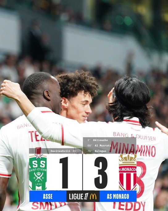 Μόλις στο 2ο λεπτό η Μονακό κατάφερε να πάρει κεφάλι στο σκορ με τον Ακλιούχ, με τον Νταβιτασβίλι στο 65’ να φέρνει το ματς ξανά στα ίσα(1-1). Τρία λεπτά αργότερα ο Αλ Μουσράτι έδωσε εκ νέου το προβάδισμα στους Μονεγάσκους και στο 78’ ο Μπαλογκάν διαμόρφωσε το τελικό 1-3.