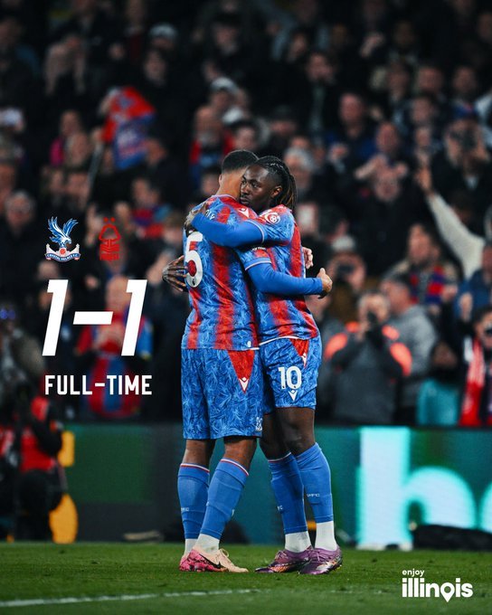 Η Κρίσταλ Πάλας πήρε ισοπαλία 1-1 από τη Νότιγχαμ Φόρεστ με και την άφησε εκτός πεντάδας και στο -2 από Τσέλσι και Νιούκαστλ.