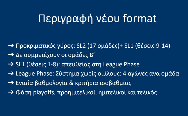 Η πιο κομβική αλλαγή αφορά τη δημιουργία μιας ενιαίας φάσης ομίλων – τη λεγόμενη League Phase – στην οποία θα συμμετέχουν όλες οι ομάδες της Super League, με κοινή βαθμολογία. Πρόκειται για ένα format που θυμίζει τις διοργανώσεις της UEFA (όπως το Champions League από το 2024/25), διασφαλίζοντας περισσότερα ανταγωνιστικά παιχνίδια υψηλού επιπέδου από νωρίς.