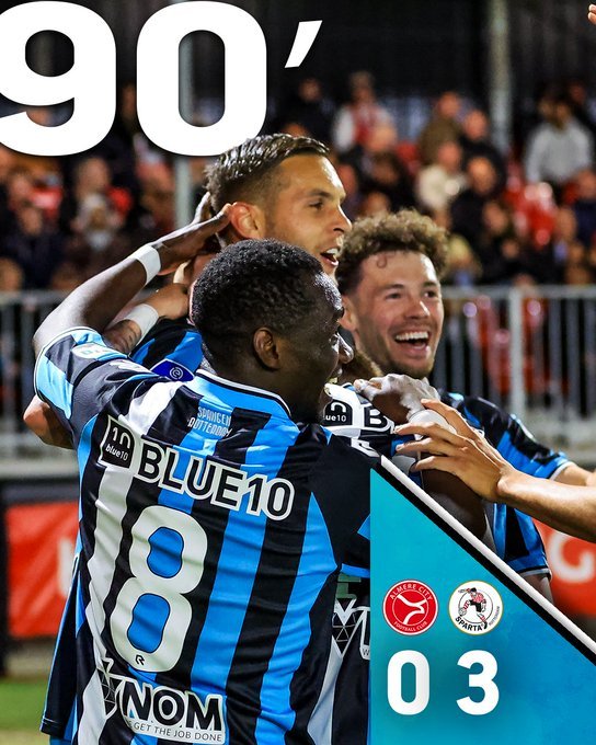 Στο 57’ η Σπάρτα έκανε το 0-1 με τον Φαν Μπέργκεν και στο 68’ ο Ερχούιρτζεν ανέβασε τον δείκτη του σκορ στο 0-2. Στο 90’ ο Χλίνσον διαμόρφωσε το τελικό 0-3.