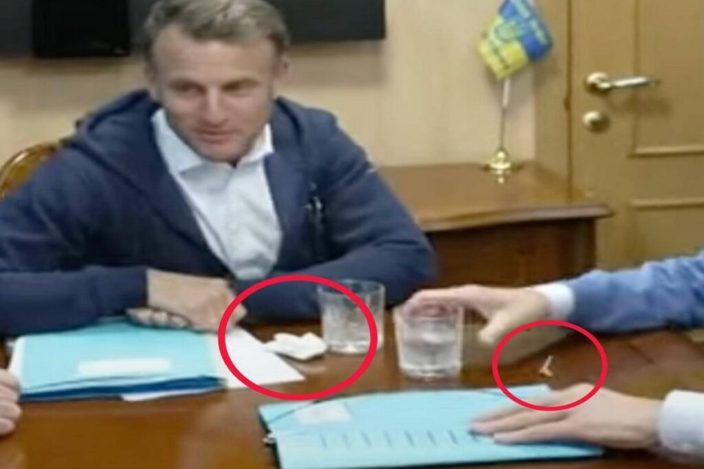 Κατά τη διάρκεια της διαδρομής των ηγετών με το τρένο καταγράφηκε το βίντεο που ανέβασε η Ζαχάροβα στο διαδίκτυο, στο οποίο όπως ισχυρίζεται η ίδια, τους δείχνει να κάθονται σε ένα τραπέζι, με μια μικρή σακούλα με λευκή σκόνη και ένα μεταλλικό κουτάλι – ορατά για λίγο . Ο Μακρόν φαίνεται να βάζει την σακούλα στην τσέπη, ενώ ο Μερτς φαίνεται να κρύβει το κουτάλι.