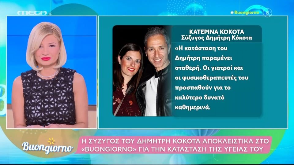 Επικοινωνία δυστυχώς δεν υπάρχει ακόμα, μόνο αντιδρά σε κάποια ερεθίσματα. Δυστυχώς εδώ και αρκετό καιρό δεν υπάρχει πρόοδος. Ευχαριστούμε πολύ τον κόσμο που αγαπά και ενδιαφέρεται για τον Δημήτρη», ανέφερε συγκεκριμένα η Κατερίνα.