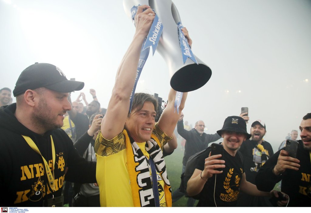 Υπάρχουν κάποιες στιγμές και κάποιες ημερομηνίες που σε στιγματίζουν. Που όσα χρόνια κι αν περάσουν θα μείνουν για πάντα στο μυαλό και την καρδιά. Η 14η Μαϊου του 2023 μπήκε στο ιστορικό κουτάκι των αναμνήσεων. Η ΑΕΚ στέφεται πρωταθλήτρια Ελλάδας και πανηγυρίζει αυτόν τον πανάξιο τίτλο στο νέο της σπίτι, ξανά στη Νέα Φιλαδέλφεια!
