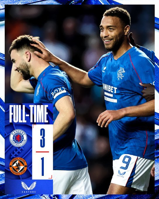 Νίκη με ανατροπή για την Ρέιντζερς η οποία κέρδισε με 3-1 την Νταντί με δύο γκολ του Ντέσερς.