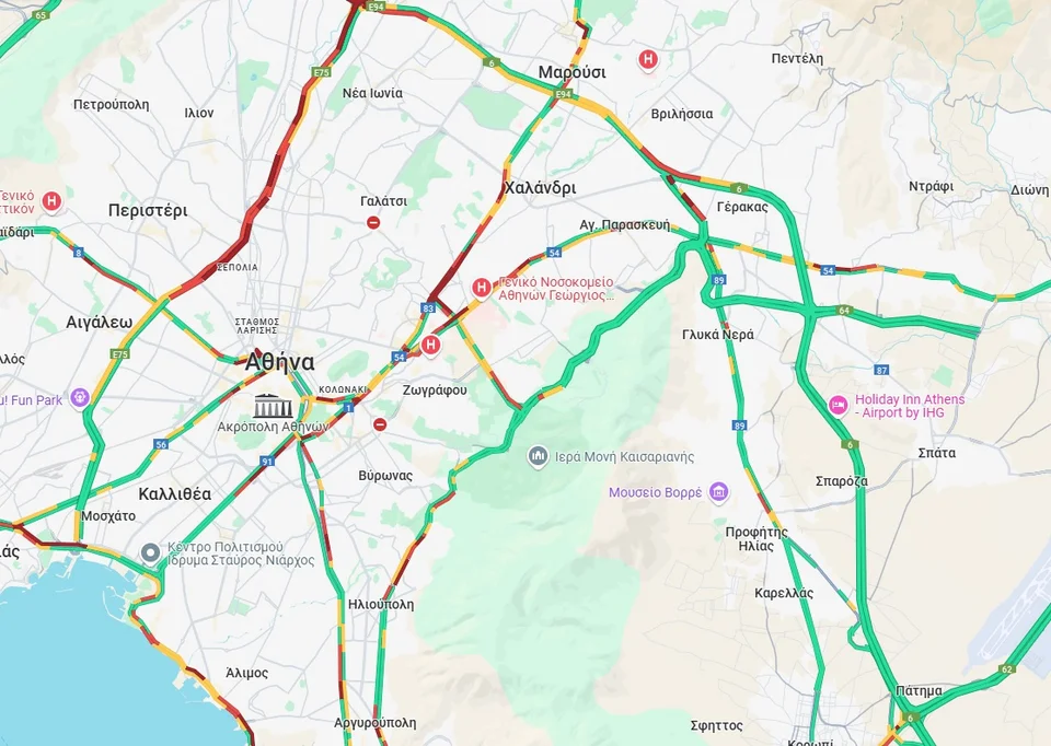 Κίνηση σημειώνεται και στα δύο ρεύματα της Κηφισίας και της Μεσογείων.