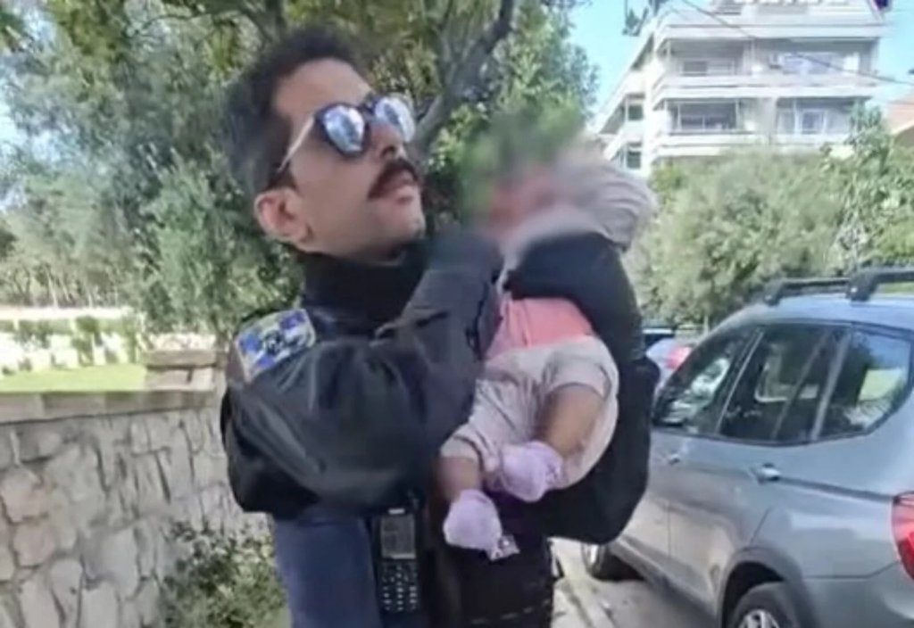 Η Ελληνική Αστυνομία δημοσίευσε βίντεο, με τη στιγμή που αστυνομικοί κρατούν στα χέρια τους το βρέφος, που βρέθηκε δίπλα από κάδο απορριμμάτων.