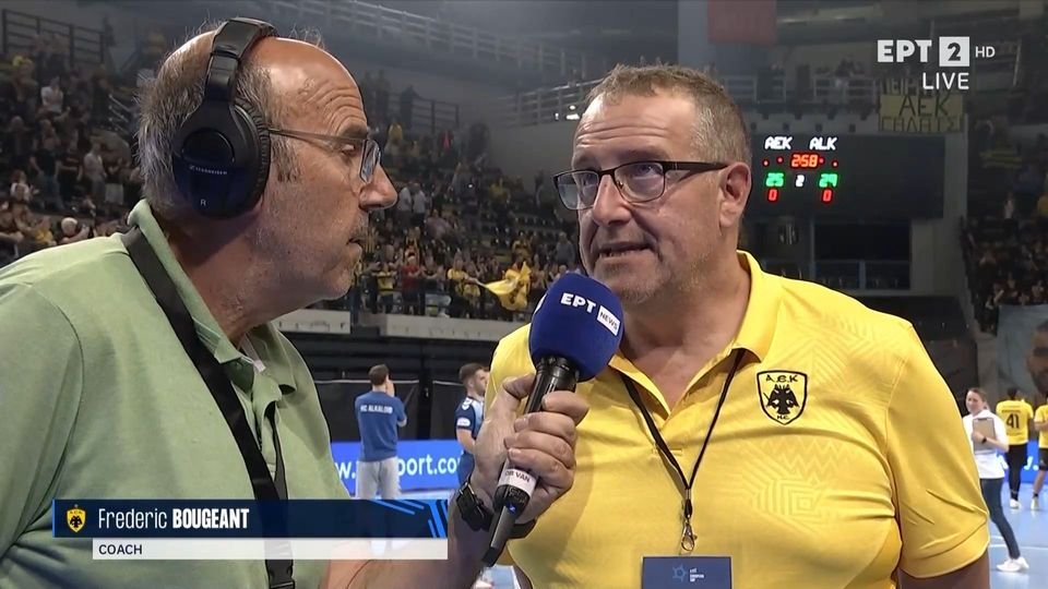 Ο Φρεντερίκ Μπουζόν μετά το τέλος του αγώνα με την Αλκαλόιντ τόνισε πως η ομάδα χάντμπολ της ΑΕΚ ηττήθηκε με 29-25 για τον πρώτο τελικό του ΕHF European Cup, καθώς έκανε αρκετά λάθη, αλλά θα δουλέψει για να κάνει την ανατροπή στο δεύτερο ματς της ερχόμενης Κυριακής στα Σκόπια. «εν κάναμε καλό παιχνίδι. Από τα λάθη μας πρέπει να μάθουμε. Χάσαμε 5 πέναλτι, χάσαμε τη συγκέντρωσή μας, χάσαμε αιφνιδιασμούς, κάναμε πολλά λάθη. Πρέπει να δουλέψουμε για την επόμενη εβδομάδα. Τίποτα δεν έχει τελειώσει, αυτό είναι το χάντμπολ».