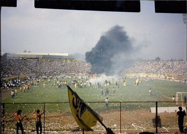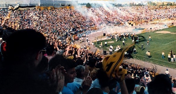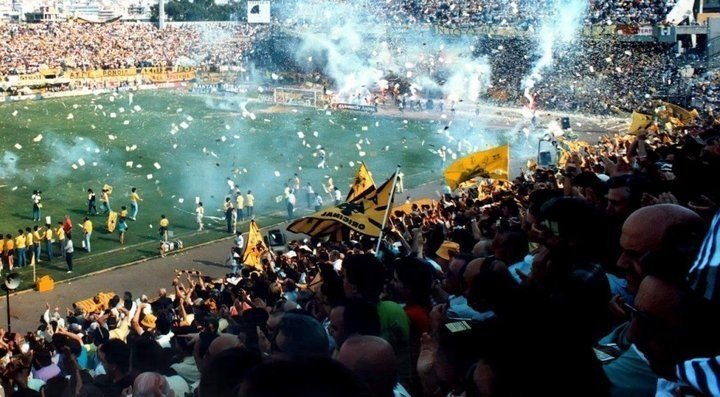 Δεν είναι για πολλά λόγια εκείνη η μέρα. Ευτυχώς, έχουμε πολλές εικόνες, σε φωτογραφία και σε βίντεο, για να καταλάβουν οι νεότεροι και να θυμηθούν οι παλιοί πώς γιορτάστηκε εκείνος ο τίτλος. Το γήπεδο ήταν κατάμεστο και κατακίτρινο απ’ άκρου εις άκρον, ο κόσμος έμενε μέσα στον αγωνιστικό χώρο πριν, μετά αλλά και κατά τη διάρκεια του αγώνα, ενώ το στρώμα του άλματος επί κοντώ μπροστά από το «πέταλο» κάηκε από τα βεγγαλικά που έπεσαν πάνω του και «έστειλε» στον ουρανό ένα κατάμαυρο καπνό! Ακολούθησε η απονομή του τροπαίου και στο τέλος των προεορτίων, ένα ελικόπτερο έριξε από ψηλά την μπάλα του αγώνα.