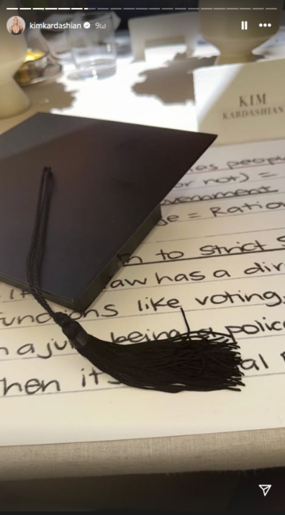 Μάλιστα, η οικογένεια και οι φίλοι της διοργάνωσαν μια ιδιωτική τελετή αποφοίτησης, προκειμένου να γιορτάσουν το γεγονός. «Όλοι εσείς ήσασταν μαζί μου σε αυτή την πορεία», δήλωσε η Κιμ Καρντάσιαν κατά τη διάρκεια της ομιλίας της.