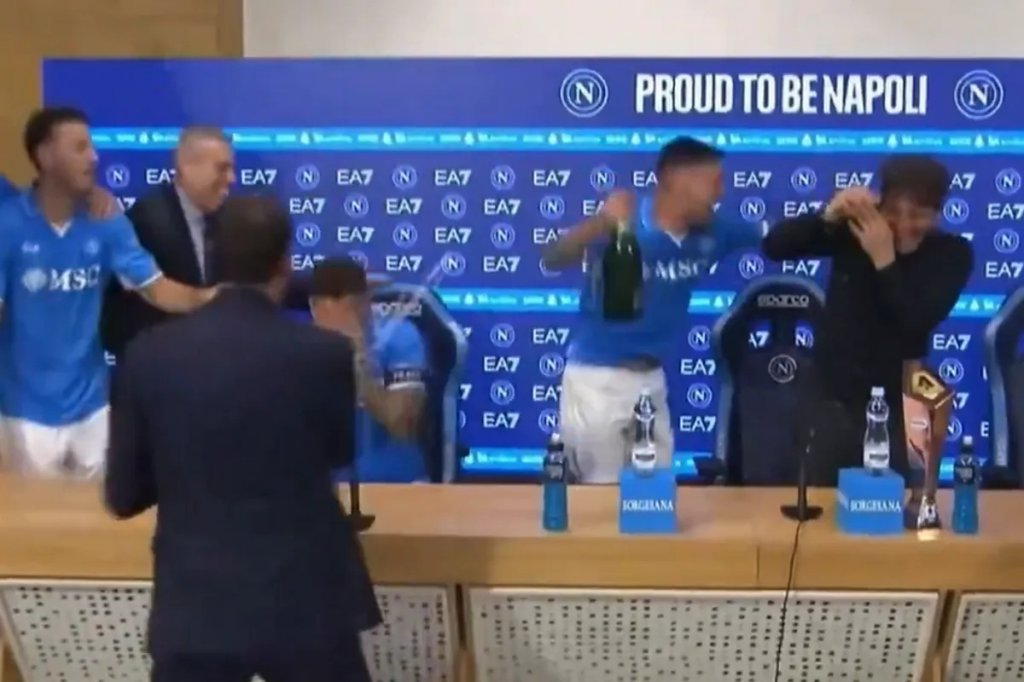 Το κλίμα στους πρωταθλητές Ιταλίας ήταν πανηγυρικό και, την ώρα που ο Αντόνιο Κόντε έδινε συνέντευξη Τύπου, οι ποδοσφαιριστές του εισέβαλαν στην αίθουσα, για να λούσουν με σαμπάνια τον προπονητή τους.