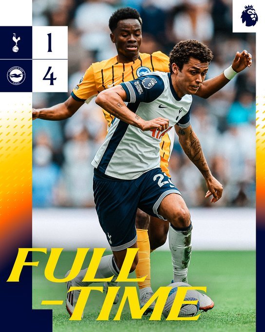 Ανώδυνη ήττα για την Τότεναμ η οποία έχασε με ανατροπή με το βαρύ 4-1 από την Μπράιτον και πλέον πάει να ξεχάσει τη φετινή τραγική σε όλα τα επίπεδα σεζόν στην Πρέμιερ Λιγκ.