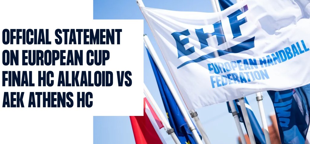 H EHF (Ευρωπαϊκή Ομοσπονδία Χάντμπολ) ανακοίνωσε επίσημα ότι το παιχνίδι της ΑΕΚ με την Αλκαλόιντ ματαιώνεται λόγω ανησυχιών για την ασφάλεια. Η Ομοσπονδία τονίζει ότι θα ακολουθήσει νέα ενημέρωση για τις διαδικασίες που θα ακολουθηθούν και θα κρίνουν ποια θα είναι η μοίρα του δεύτερου τελικού.