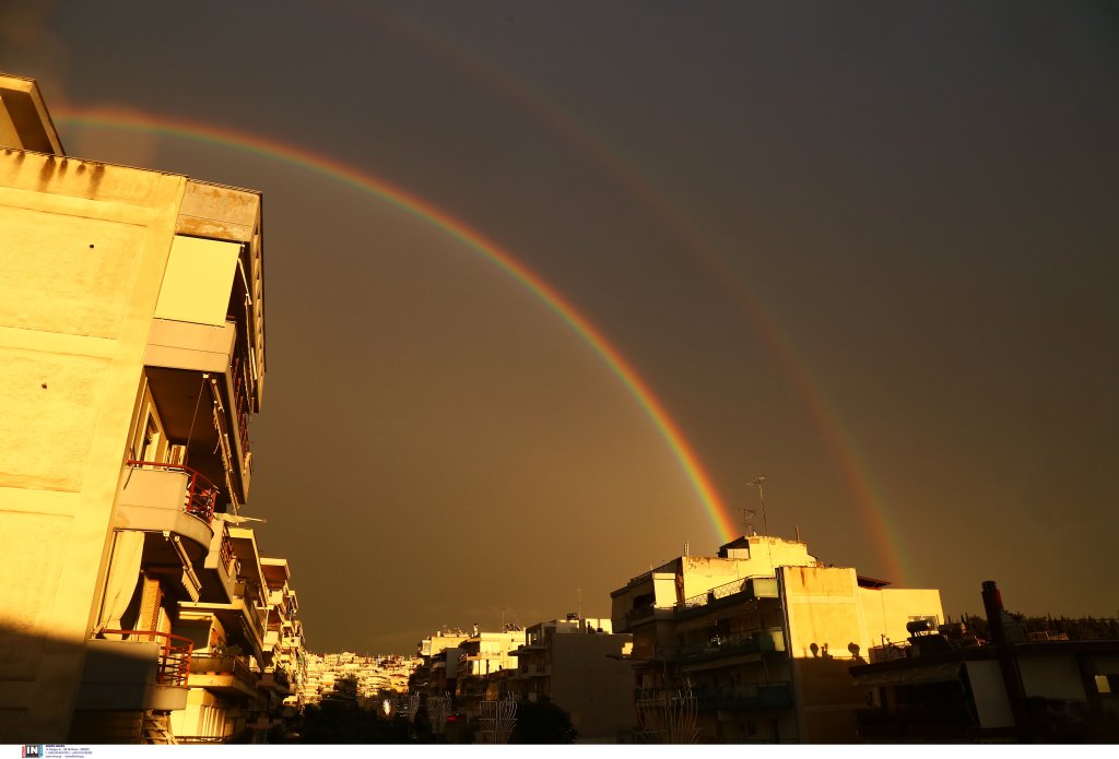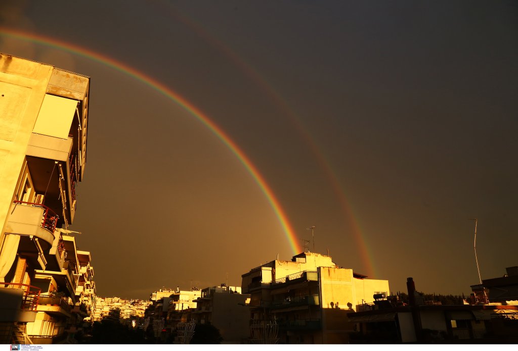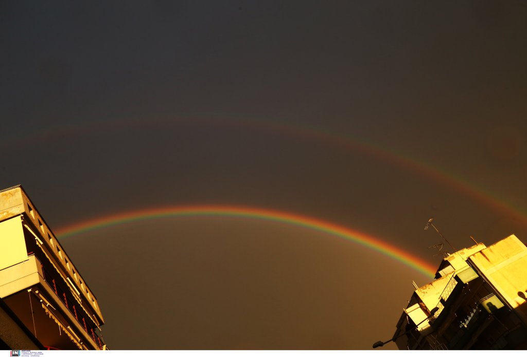 Το κύμα κακοκαιρίας που σημειώθηκε σήμερα σε όλη σχεδόν τη χώρα είχε και τα… όμορφά του! Το απόγευμα της Κυριακής ένα εντυπωσιακό διπλό ουράνιο τόξο δημιουργήθηκε στον ουρανό της Θεσσαλονίκης.