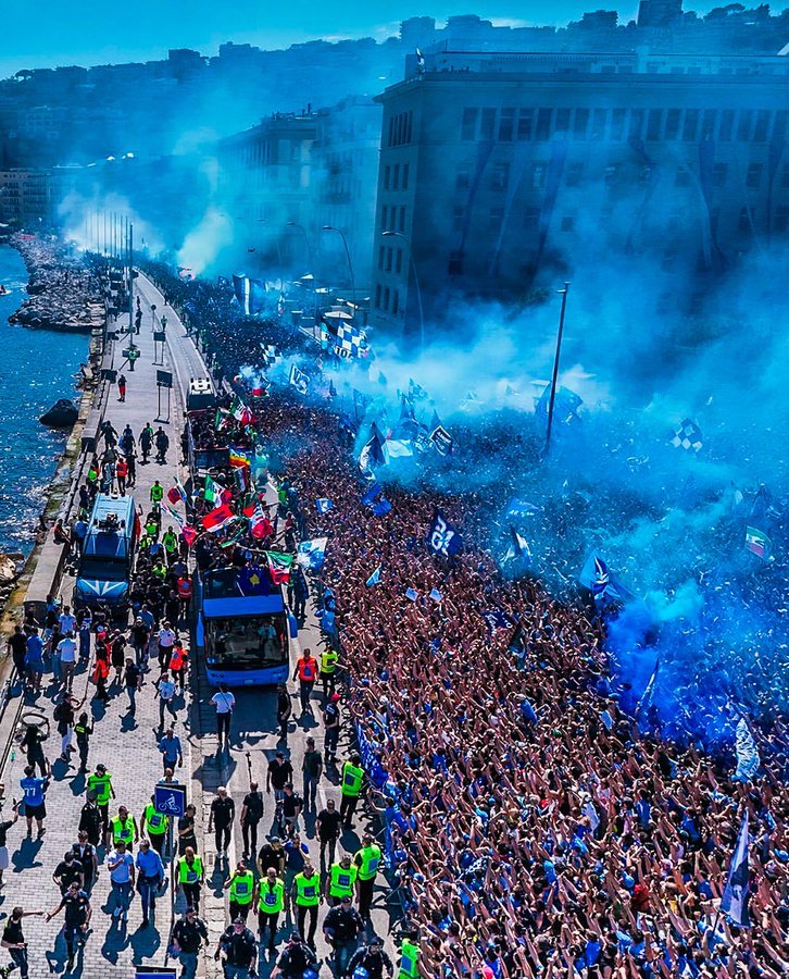 Ο Αντόνιο Κόντε και οι παίκτες του έκαναν το... θαύμα και οι οπαδοί τους τούς αποθέωσαν! Όπως μετέδωσε η Gazzetta dello Sport, περίπου 200.000 οπαδοί της Νάπολι ξεχύθηκαν στους δρόμους της πόλης μια... απλή Δευτέρα και ακολούθησαν το πούλμαν της πρωταθληματικής παρέλασης, δημιουργώντας απίστευτη ατμόσφαιρα. Γαλάζια καπνογόνα, συνθήματα, ενθουσιασμός. Η πόλη γέμισε ζωή και όλοι οι φίλοι των Παρτενοπέι γιόρτασαν με την ψυχή τους.