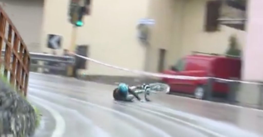 Θεατές κατέγραψαν, μάλιστα, τη στιγμή του ατυχήματος με τον 24χρονο ποδηλάτη να φαίνεται να πατάει φρένο και λόγω και του ολισθηρού οδοστρώματος, να χάνει την ισορροπία του και να πέφτει.