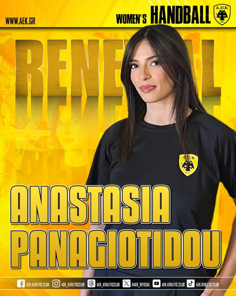 Η ΑΕΚ βρίσκεται στην ευχάριστη θέση να ανακοινώσει την ανανέωση της συνεργασίας της με την Αναστασία Παναγιωτίδου. Η 26χρονη αριστερή εξτρέμ θα ενισχύσει και τη νέα σεζόν το τμήμα Χάντμπολ Γυναικών.