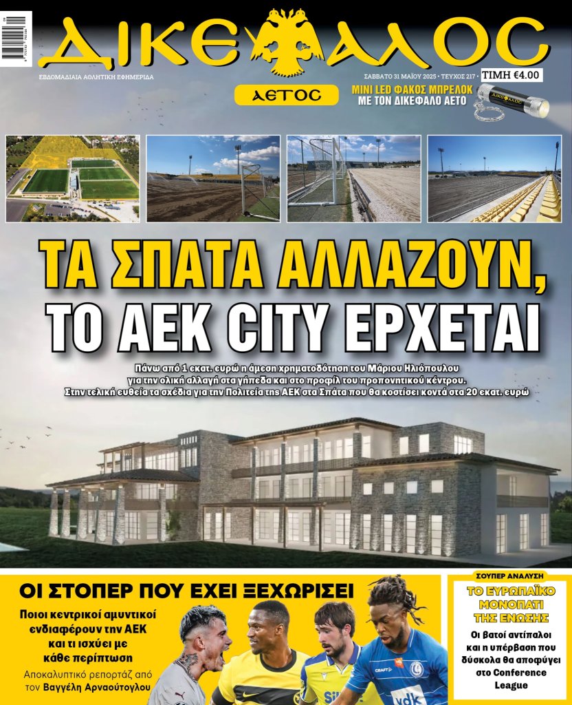 Ο «πατριάρχης» του κιτρινόμαυρου ρεπορτάζ, Φαίδωνας Κωνσταντουδάκης, συνδέει το παρελθόν με το παρόν και το μέλλον του ΔΙΚΕΦΑΛΟΥ ΑΕΤΟΥ, με τον δικό του ξεχωριστό και άφταστο τρόπο.