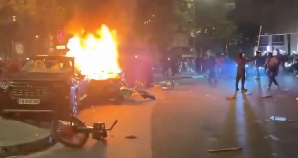 Riots have broken out again in Paris. PSG fans have set cars on fire. The streets are in chaos.