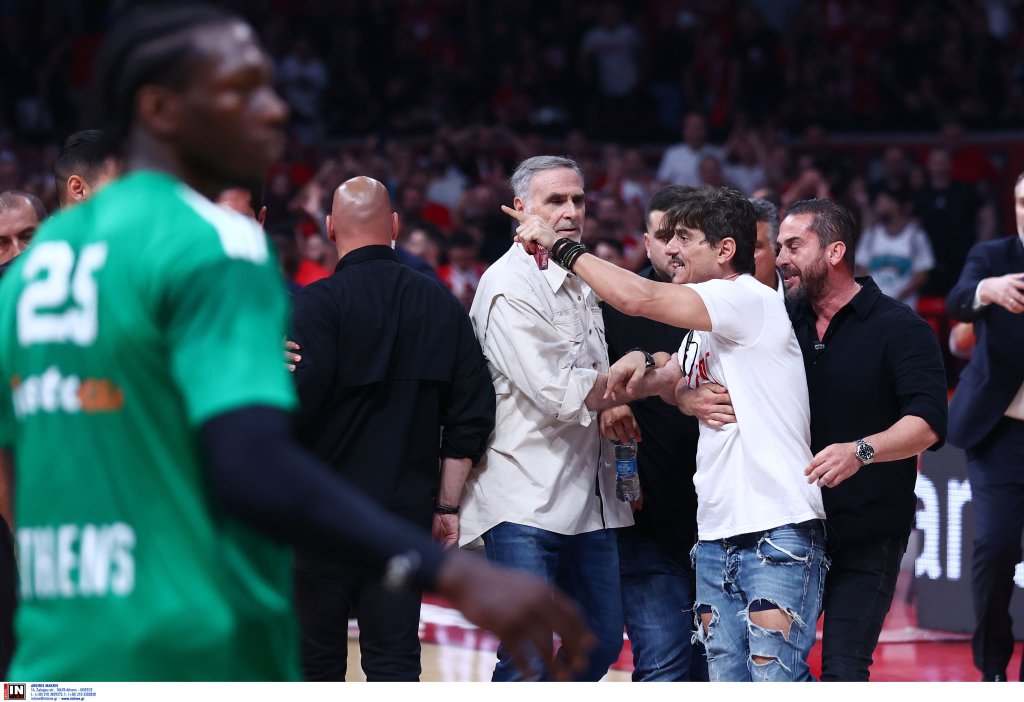 Ένταση πριν το τζάμπολ του Ολυμπιακός-Παναθηναϊκός στο ΣΕΦ με πρωταγωνιστή τον Δημήτρη Γιαννακόπουλο. Ο κόσμος των ερυθρολεύκων έβριζε εν χορώ τον ισχυρό άνδρα των πρασίνων κι αυτός απάντησε με χειρονομία. Οι διαιτητές τον απέβαλαν από το γήπεδο κι έτσι δεν θα παρακολουθήσει από κοντά στο ματς.