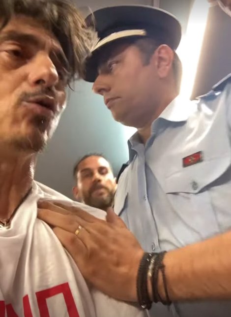 Δεν έχεις το δικαίωμα να με ακουμπάς, ή συνέλαβέ με ή άφησέ με να μπω στο γήπεδο. Δεν θέλω την πρότασή σου, δεν είσαι ούτε η μάνα μου, ούτε ο πατέρας σου. Είσαι αστυνομικός. Άφησέ με να μπω, μην χειροδικείτε. Έβριζαν το παιδί μου. Σας ακούω 45 λεπτά να μας δουλεύετε όλοι σας. Συνεχίζουν τις χειροδικίες. Σέβομαι την αστυνομία, τη βοηθάω όπου μπορώ. Θέλω να περάσω μέσα.