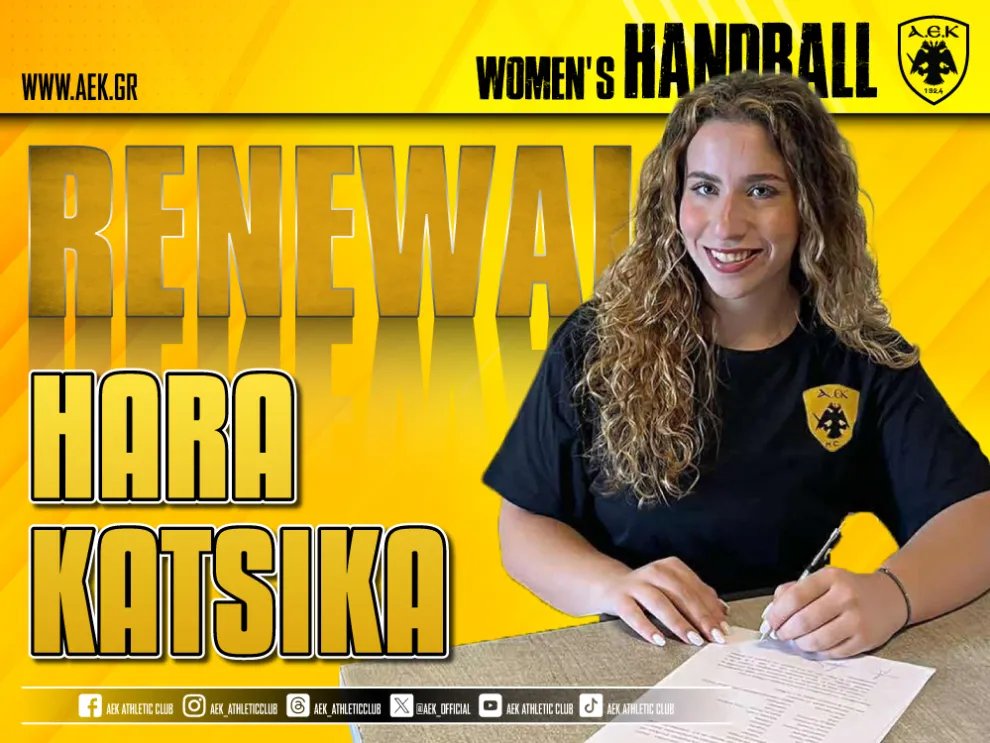 «H ΑΕΚ βρίσκεται στην ευχάριστη θέση να ανακοινώσει την ανανέωση της συνεργασίας της με την Χαρά Κατσίκα. Η 20χρονη (11/09/2004) δεξιά εξτρέμ θα αγωνιστεί και τη νέα σεζόν στη γυναικεία ομάδα Χάντμπολ της ΑΕΚ.