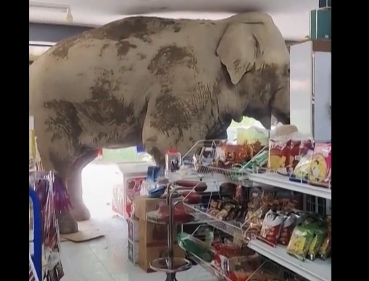 Το κατάστημα βρίσκεται στην επαρχία Νακόν Ρατσασίμα, κοντά στο Εθνικό Πάρκο Κάο Γιάι, όπου οι ελέφαντες συχνά κάνουν βόλτες. Αλλά ποτέ πριν κανείς δεν είχε μπει μέσα, ούτε είχε πάρει κάτι από τα ράφια.