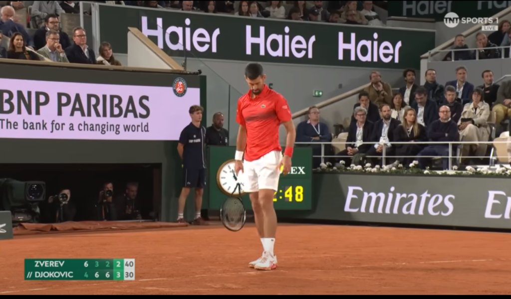 Για 13η φορά στην καριέρα του, ο Νόβακ Τζόκοβιτς θα παίξει σε ημιτελικό Roland Garros, αφού, στον προημιτελικό, επικράτησε 3-1 σετ (4-6, 6-3, 6-2, 6-4) του Αλεξάντερ Ζβέρεφ.