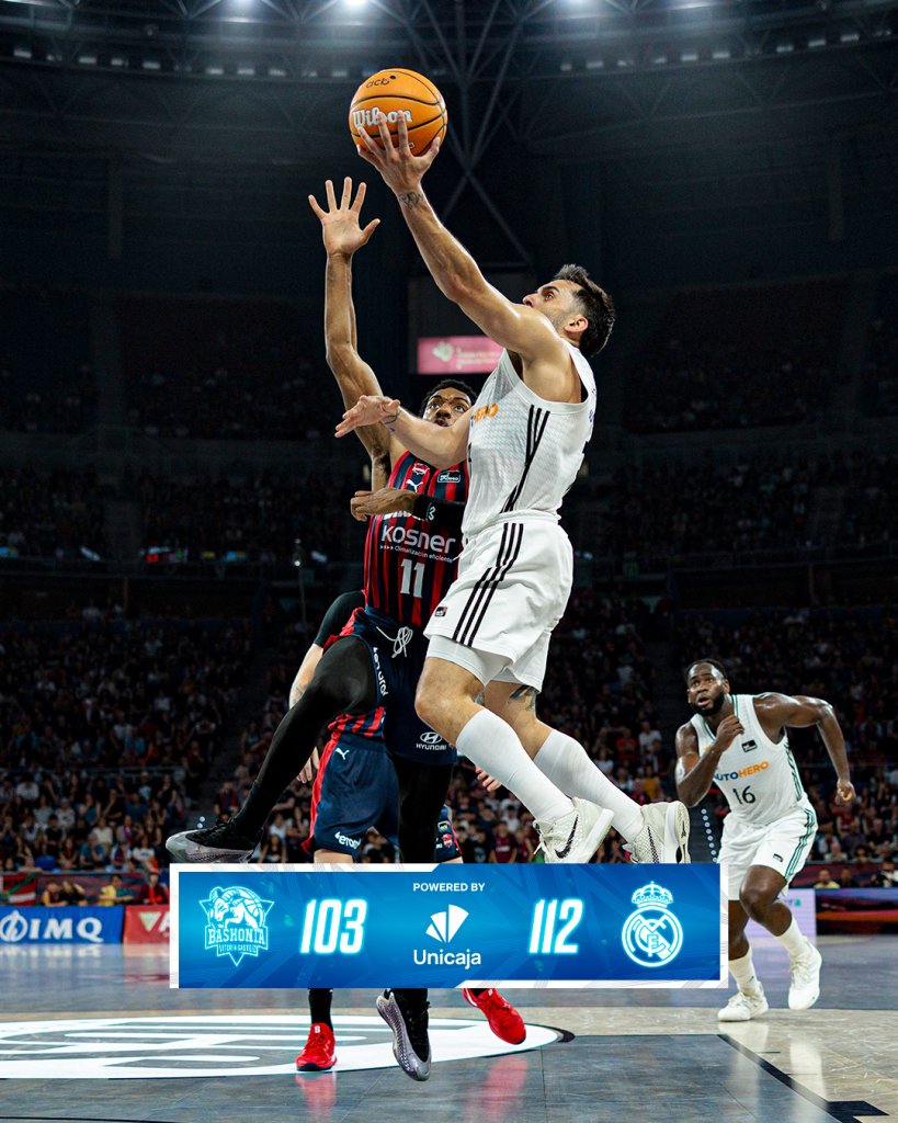 Στην ημιτελική φάση του ισπανικού πρωταθλήματος θα βρεθεί η Ρεάλ Μαδρίτης, αφού νίκησε 112-103, στην Βιτόρια, την Μπασκόνια, διπλασιάζοντας τις νίκες της.