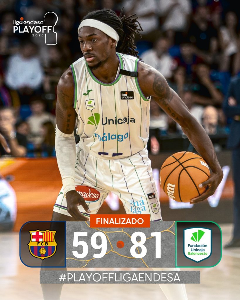 Η Μάλαγα πέρασε σα σίφουνας, από το "Παλάου Μπλαουγκράνα", συντρίβοντας 81-59 την Μπαρτσελόνα και ισοφάρισε, σε 1-1, τη σειρά των προημιτελικών του ισπανικού πρωταθλήματος.