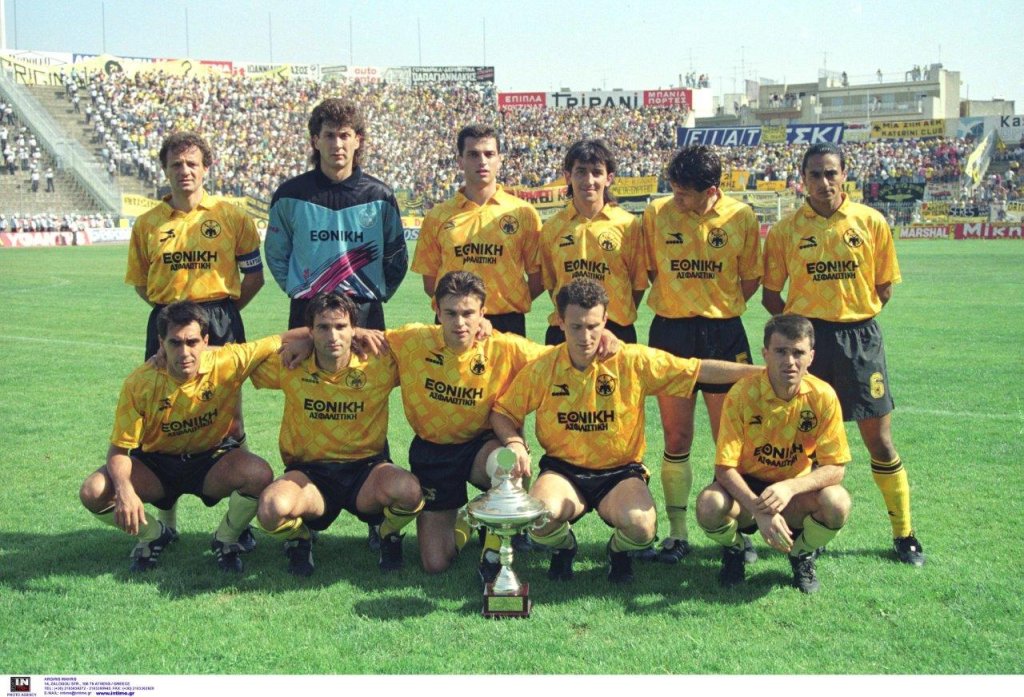 Στη φωτογραφία από εκείνη την Κυριακή με φόντο την κατακίτρινο πέταλο, διακρίνονται όρθιοι οι Σαββίδης (87’ Καραγκιοζόπουλος) Μήνου, Δημητριάδης, Καραγιάννης, Σαμπανάτζοβιτς, Αλεξανδρής και καθιστοί οι Σταματής, Πατίκας (77’ Κούτουλας) Βασιλόπουλος, Αλεξανδρής και Σαβέβσκι