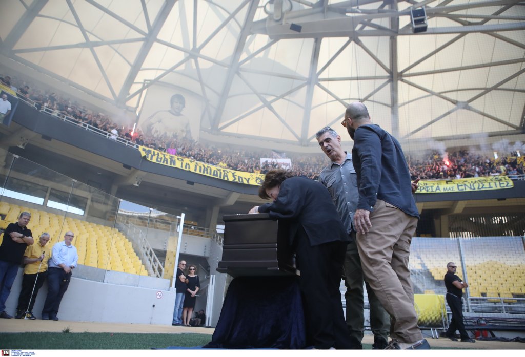 Οι στιγμές στη Νέα Φιλαδέλφεια με τη σορό του Δημήτρη Χατζηχρήστου να μπαίνει στο Ναό και τα παιδιά του στη θύρα 40 να τραγουδούν, είναι συγκλονιστικές. Συγκλονιστικά ήταν και τα λόγια της Κατερίνας, της συζύγου του Αρχηγού, η οποία τόνισε πως «το μόνο που στεναχωρούσε τον Δημήτρη τόσα χρόνια ήταν όταν τσακωνόσασταν μεταξύ σας. Να μην σας ξαναδεί να τσακώνεστε».