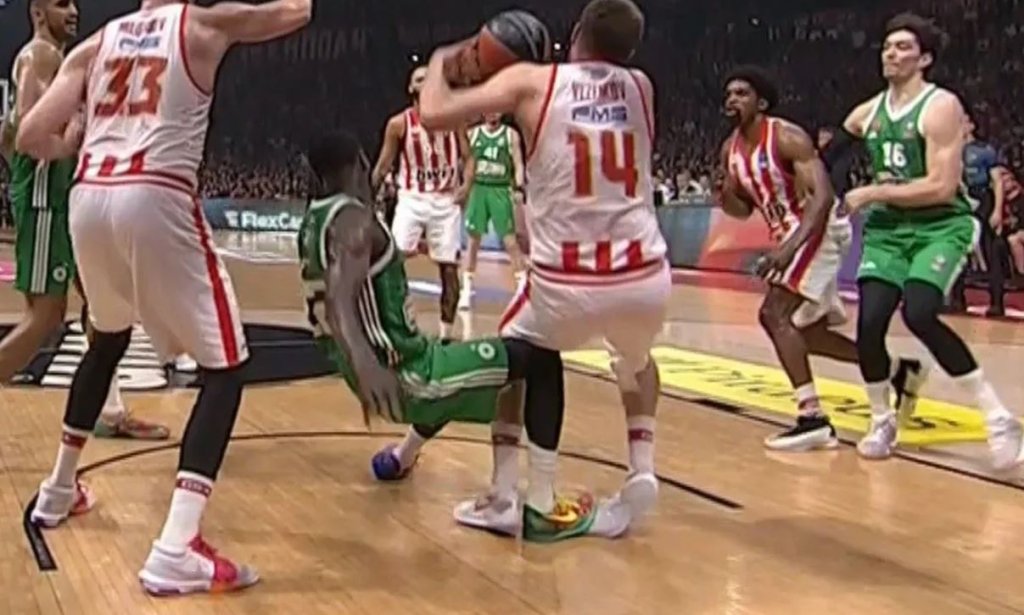 Ο ίδιος έμεινε πεσμένος στο παρκέ, δείχνοντας να πονάει και λίγο μετά αποχώρησε για τα αποδυτήρια του ΣΕΦ υποβασταζόμενος από τους ανθρώπους της ομάδας.