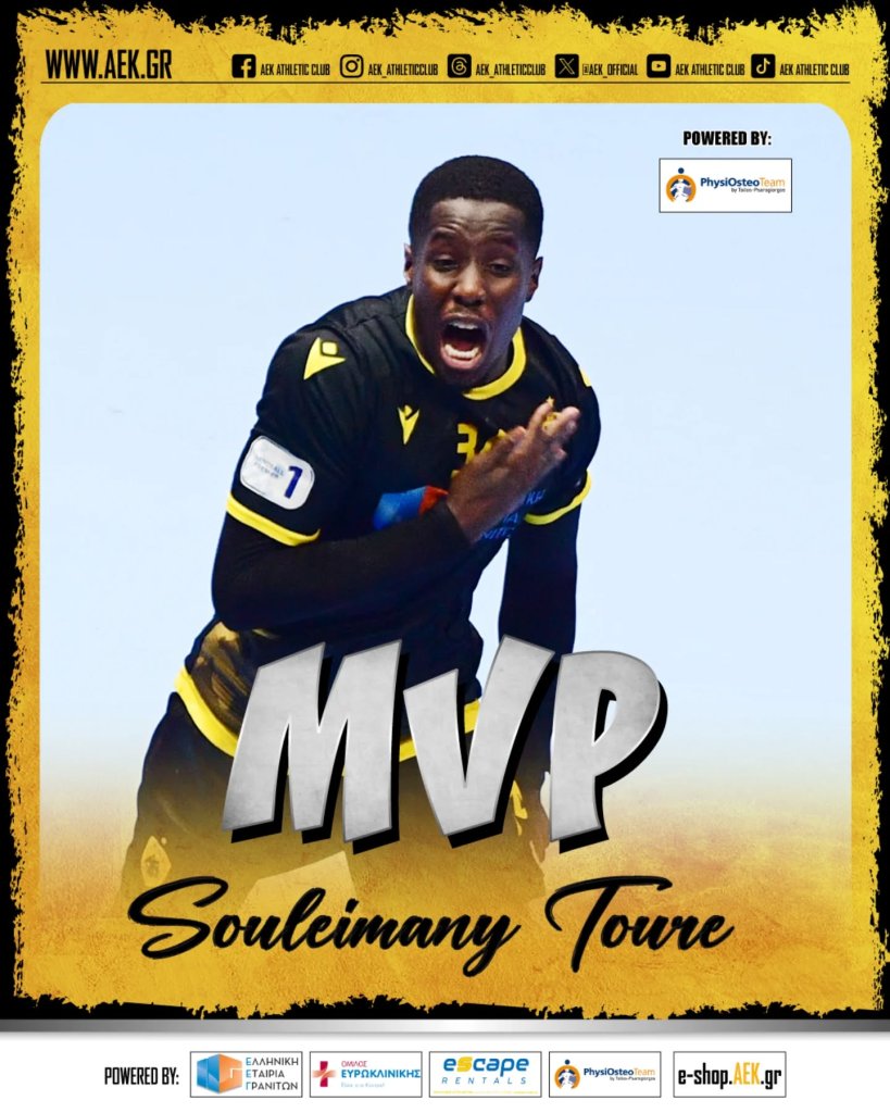 Η ομάδα χάντμπολ της ΑΕΚ έκανε το break και κατά συνέπεια το 2-2 απέναντι στον Ολυμπιακό και έστειλε τη σειρά των τελικών του Πρωταθλήματος σε πέμπτο ματς και μετά το τέλος της αναμέτρησης ανακοινώθηκε πως ο Σουλειμάνι Τουρέ ήταν αυτός που κέρδισε τον τίτλο του MVP, αφού πέτυχε κρίσιμα γκολ.