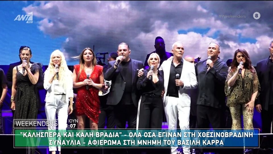 Δεκαέξι γνωστοί καλλιτέχνες για τρεις ώρες ερμήνευσαν τραγούδια που ο Βασίλης Καρράς έκανε επιτυχίες.