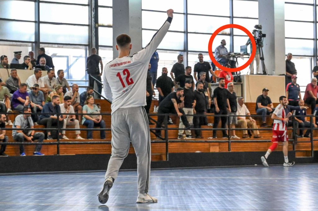 Από εκεί και πέρα το μεγάλο λάθος της Αστυνομίας (κι ας το ζήτησε επανειλημμένα η ΑΕΚ), αλλά και της ΟΧΕ, που πάντα έχει την ευθύνη της διεξαγωγής σε ένα κεκλεισμένων των θυρών αγώνα, ήταν ότι τοποθέτησε τους ανθρώπους τους ΟΣΦΠ ακριβώς εκεί που έκανε την τηλεοπτική μετάδοση, ο σπίκερ της ΕΡΤ! Είναι ξεκάθαρο και αυτό στη φωτογραφία. Λάθη που δυστυχώς δημιούργησαν μια άσχημη εντύπωση για όσους παρακολουθούσαν τον τελικό από την τηλεόραση.
