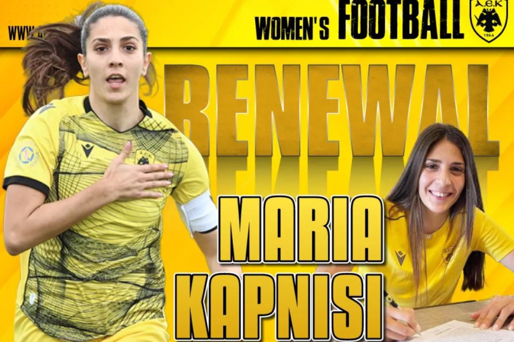 Η στελέχωση του νέου ρόστερ ξεκίνησε από την αρχηγό για την γυναικεία ομάδα ποδοσφαίρου της ΑΕΚ που ανακοίνωσε την ανανέωση της συνεργασίας με την Μαρία Καπνίση.