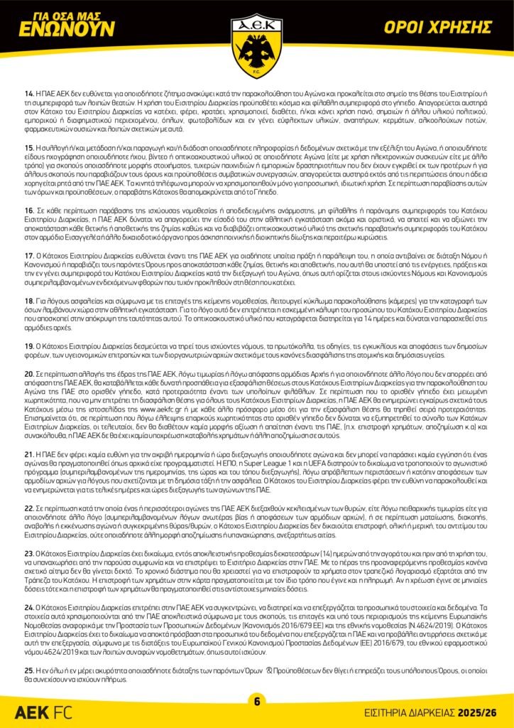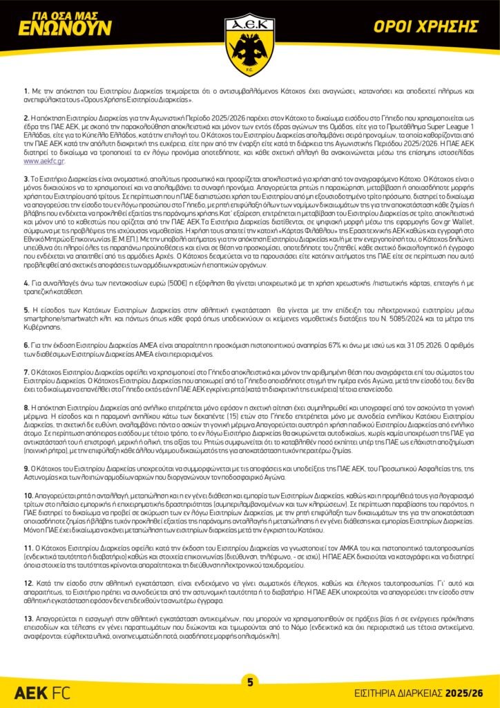 Η ΠΑΕ ΑΕΚ παρέχει ολοκληρωμένη πώληση των εισιτηρίων διαρκείας ΑΠΟΚΛΕΙΣΤΙΚΑ και ΜΟΝΟ ηλεκτρονικά, χωρίς αυτοπρόσωπη παρουσία, ουρές και ταλαιπωρία!