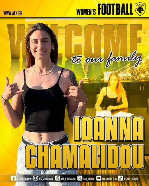 Η ΑΕΚ βρίσκεται στην πολύ ευχάριστη θέση να ανακοινώσει την έναρξη της συνεργασίας της με την Ιωάννα Χαμαλίδου. Η 28χρονη (11/10/1996) αθλήτρια θα ενισχύσει το τμήμα Ποδοσφαίρου Γυναικών της ΑΕΚ καθώς υπέγραψε συμβόλαιο διετούς συνεργασίας.
