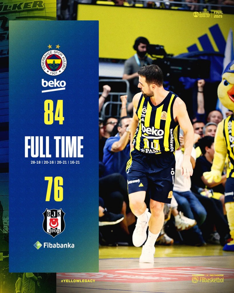 Μετά την κατάκτηση του Κυπέλλου και της Euroleague, η Φενέρμπαχτσε ετοιμάζεται να πανηγυρίσει και το πρωτάθλημα Τουρκίας. Στο Game 2 των Τελικών, η Πρωταθλήτρια Ευρώπης επικράτησε, εντός έδρας, 84-76, της Μπεσίκτας και βρίσκεται μια νίκη μακριά από τη "σκούπα" και το triple-crown.