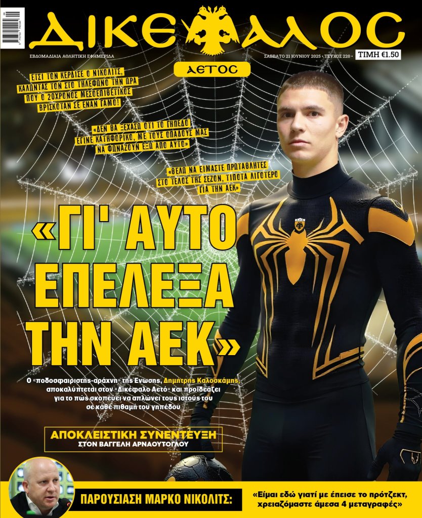 Ο «πατριάρχης» του κιτρινόμαυρου ρεπορτάζ, Φαίδωνας Κωνσταντουδάκης, συνδέει το παρελθόν με το παρόν και το μέλλον του ΔΙΚΕΦΑΛΟΥ ΑΕΤΟΥ, με τον δικό του ξεχωριστό και άφταστο τρόπο.