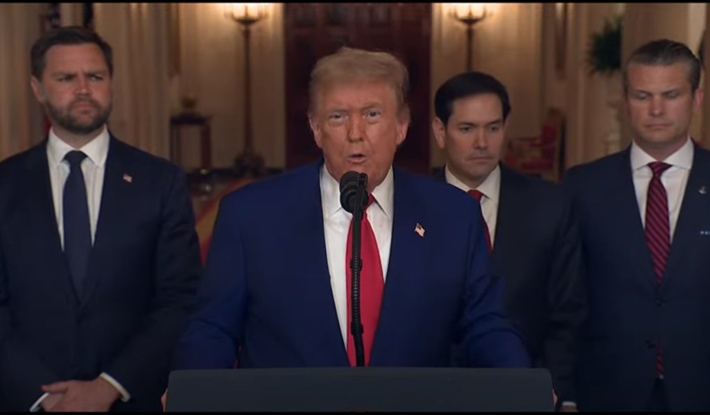 Ο Τραμπ χαρακτήρισε «θεαματική στρατιωτική επιτυχία» τα αμερικανικά στρατιωτικά πλήγματα στις τρεις ιρανικές πυρηνικές εγκαταστάσεις. «Απόψε, μπορώ να αναφέρω στον κόσμο ότι τα πλήγματα ήταν μια θεαματική στρατιωτική επιτυχία. Οι βασικές εγκαταστάσεις πυρηνικού εμπλουτισμού του Ιράν έχουν εξαλειφθεί πλήρως και ολοκληρωτικά» δήλωσε ο Τραμπ στις πρώτες δημόσιες δηλώσεις του μετά την πραγματοποίηση των χτυπημάτων.