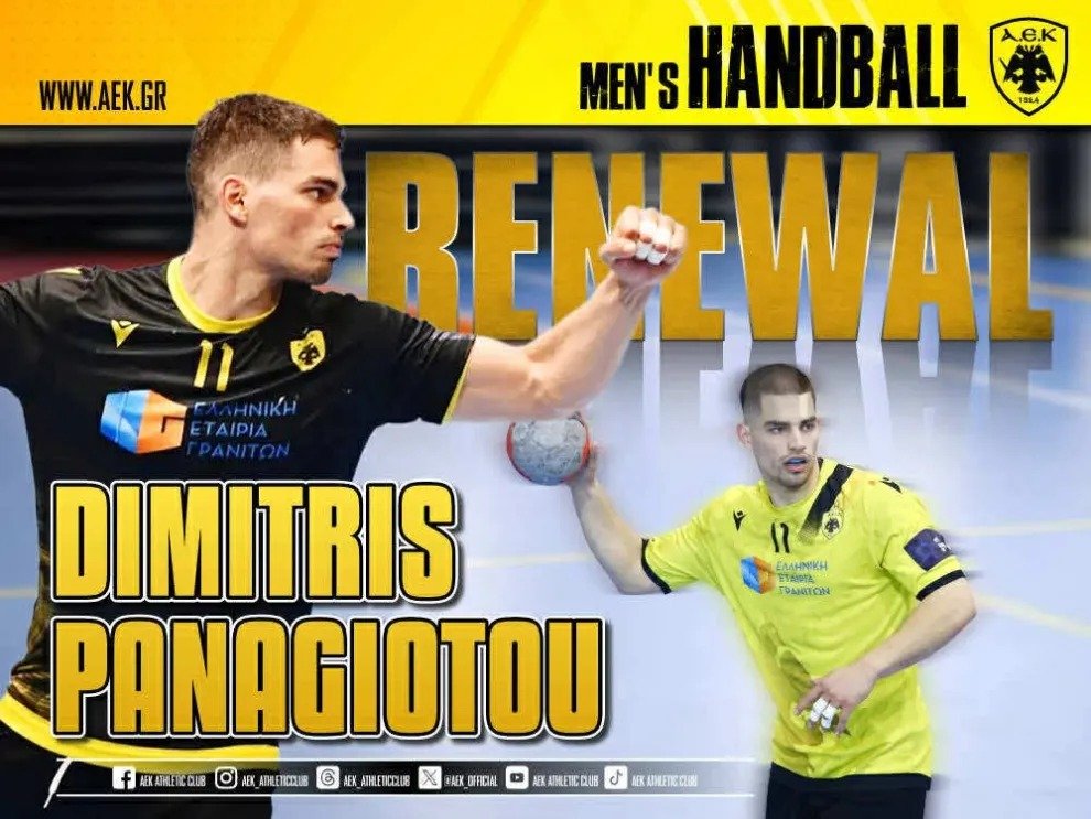 "Η ΑΕΚ βρίσκεται στην ευχάριστη θέση να ανακοινώσει την ανανέωση της συνεργασίας της με τον Δημήτρη Παναγιώτου. Ο 21χρονος (21/05/2004) διεθνής πλέι μέικερ υπέγραψε το νέο του συμβόλαιο και θα παραμείνει στο δυναμικό της ανδρικής ομάδας Χάντμπολ για δύο ακόμα χρόνια.