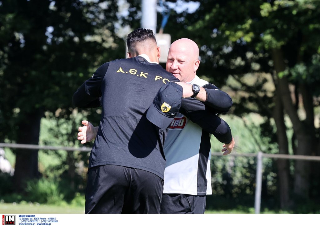 Ο Θωμάς Στρακόσα ενσωματώθηκε σήμερα στην προετοιμασία της ΑΕΚ και έτυχε θερμής υποδοχής από τον νέο τεχνικός της ΑΕΚ, Μάρκο Νίκολιτς. Ο Σέρβος αγκάλιασε τον Αλβανό διεθνή και οι δυο τους τα είπαν για μερικά δευτερόλεπτα.