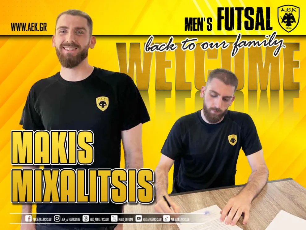 «Η ΑΕΚ βρίσκεται στην ευχάριστη θέση να ανακοινώσει την έναρξη της συνεργασίας της με τον Μάκη Μιχαλίτση. Ο 26χρονος (10/11/1999) διεθνής τερματοφύλακας υπέγραψε τριετές συμβόλαιο και εντάσσεται στο δυναμικό της ανδρικής ομάδας Futsal της ΑΕΚ.