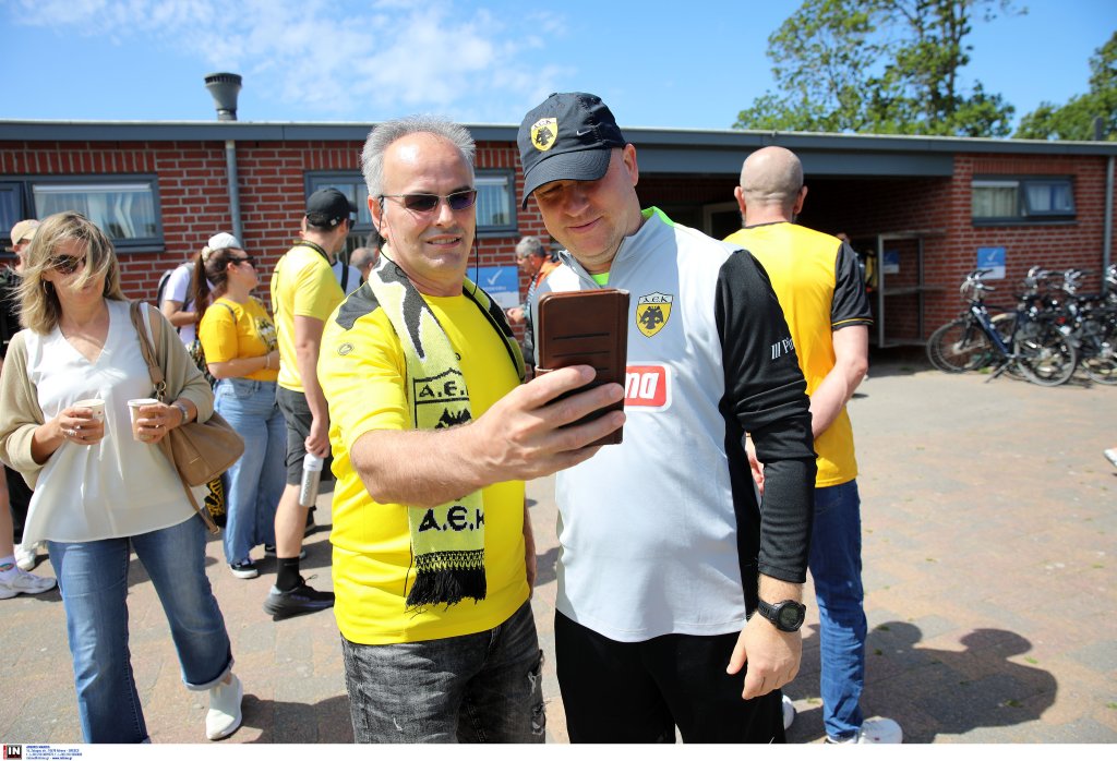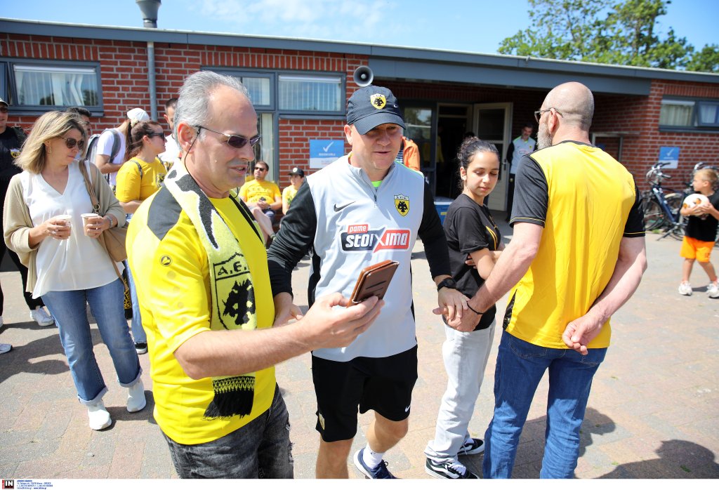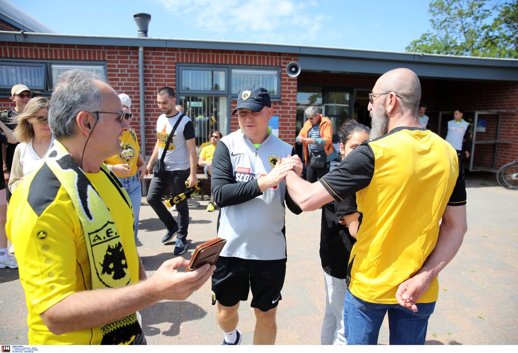 Η ΑΕΚ δίνει το πρώτο της φετινό φιλικό και στο προπονητικό του Μπουρχ Χάαμστεντε δίνουν το παρών πολλοί φίλοι της ομάδας από τις γύρω περιοχές αλλά ακόμα και από την Ελλάδα. Χαρακτηριστικό είναι στο προπονητικό βρίκσεται ένας μπαμπάς με το αγοράκι του το οποίο μοίρασε κίτρινα τριαντάφυλλα στους παίκτες και τον Νίκολιτς. Όλοι ήθελαν μια φωτογραφία με τον νέο προπονητή και τους ποδοσφαιριστές με το κλίμα να είναι εξαιρετικό.